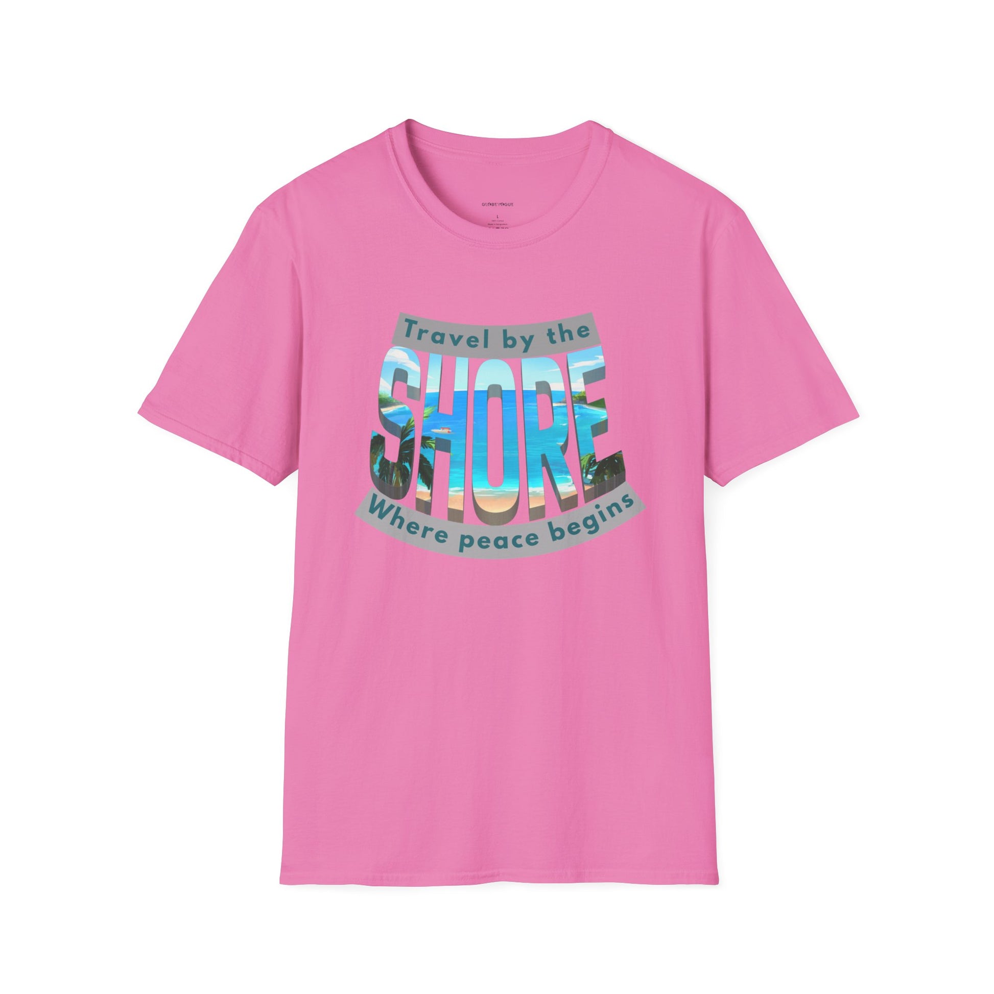 Beach Vibes Unisex Softstyle T-Shirt – “Travel by the Shore” Design