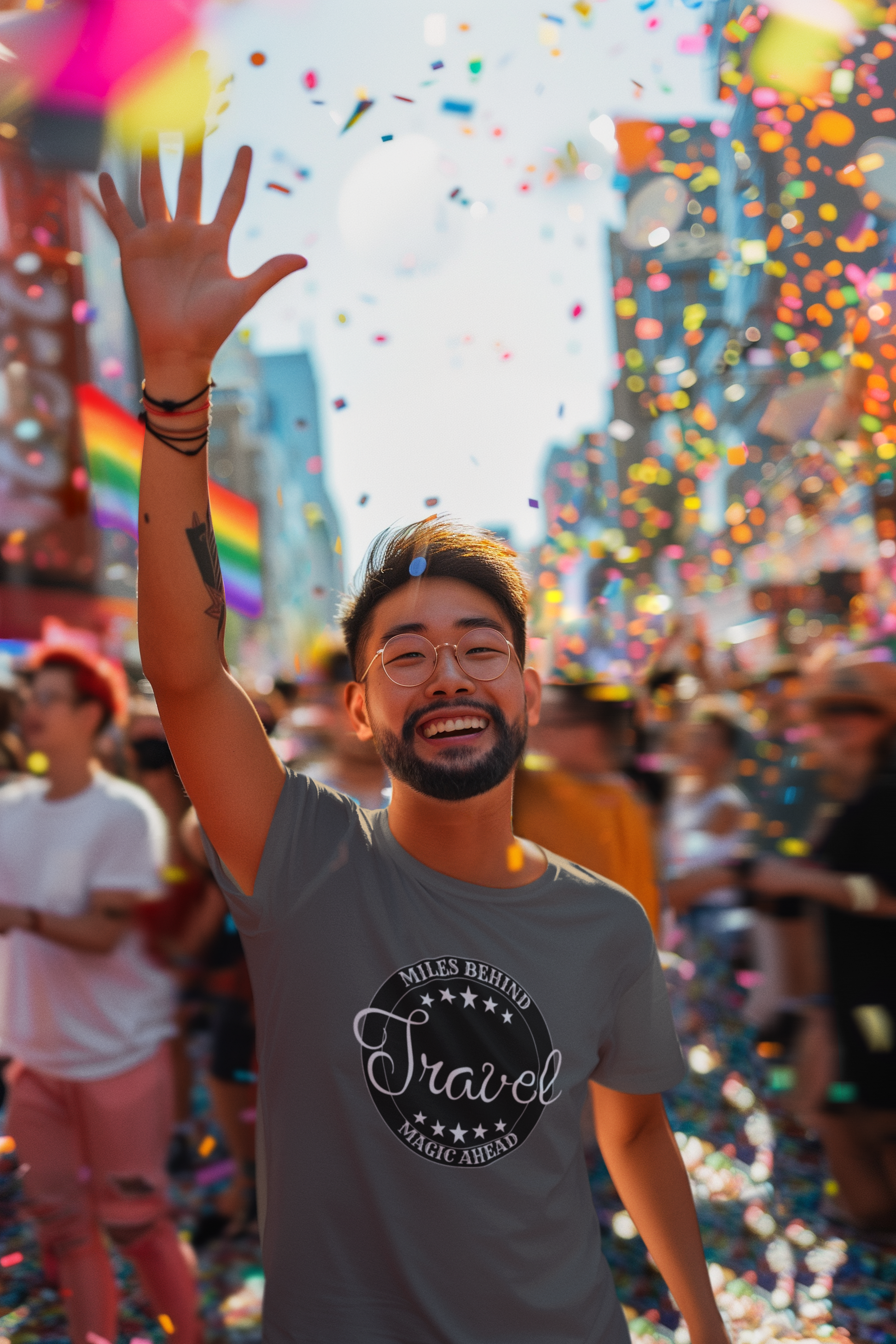 Unisex Travel T-Shirt: “Miles Behind, Magic Ahead”