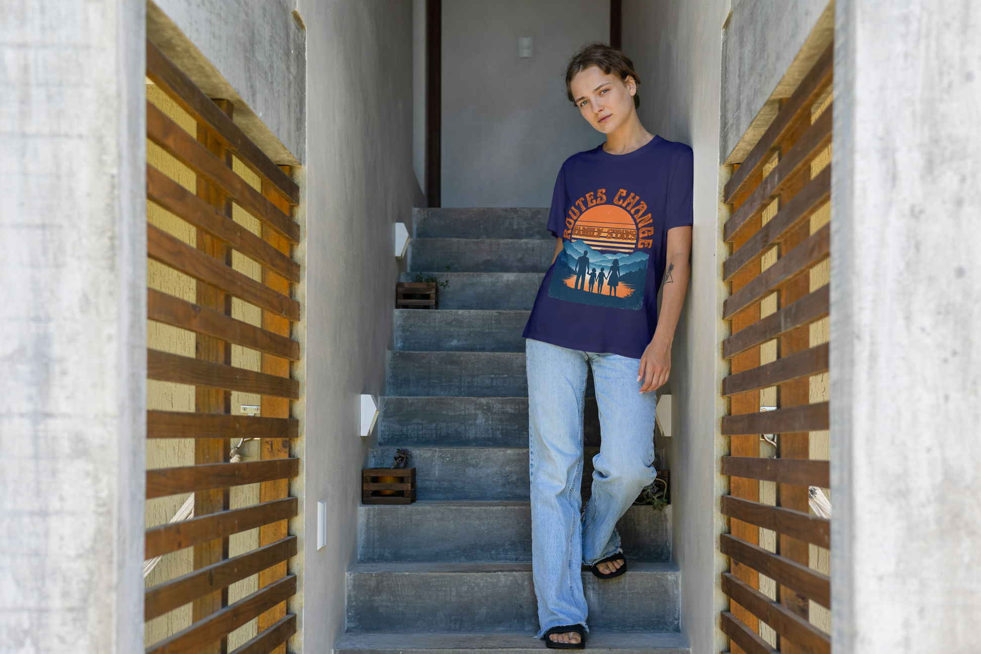 Family Sunset Camping T-Shirt – "Routes Change, Family Stays" Outdoor Adventure Tee