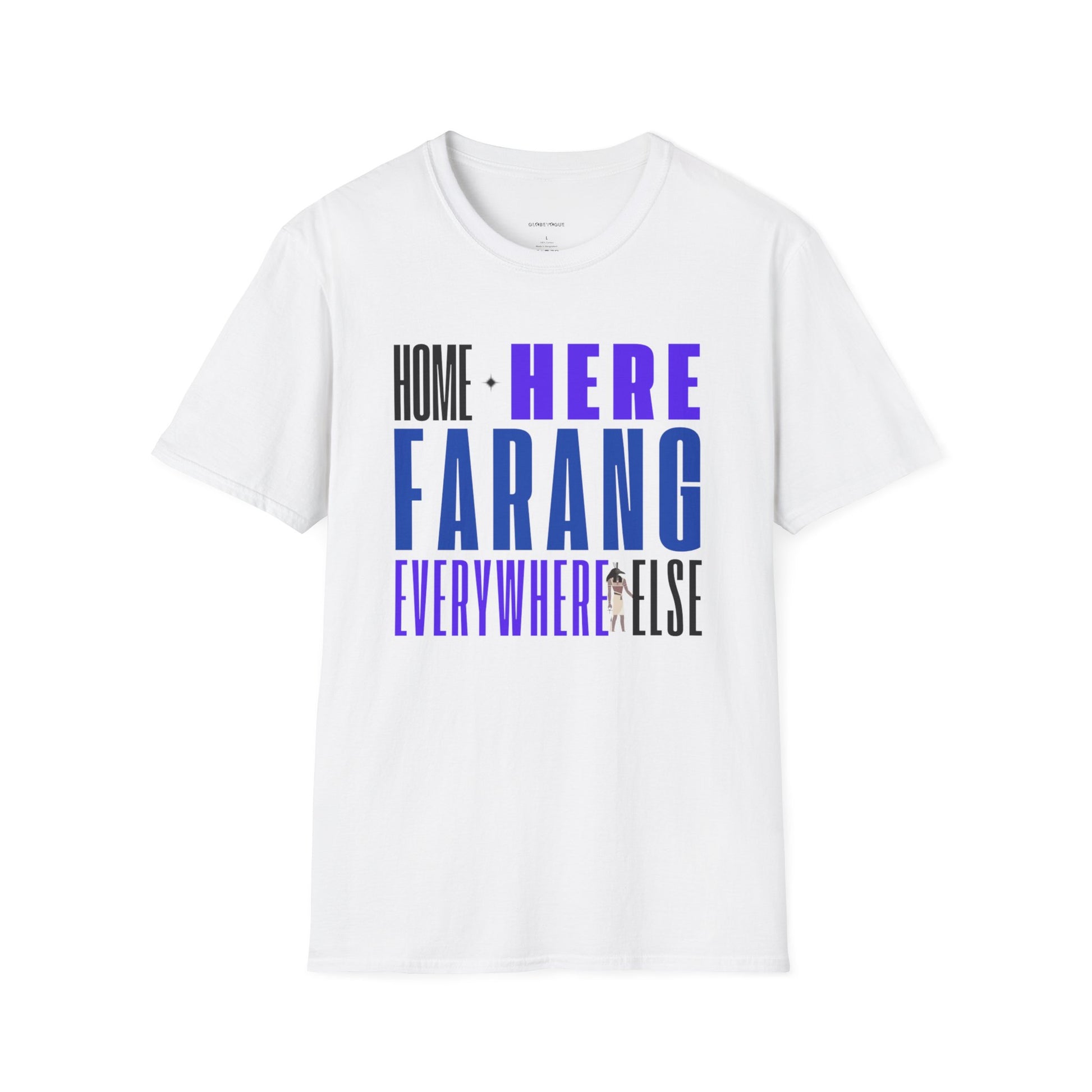 “Home Is Here Farang Everywhere Else” Softstyle T-Shirt for serious travellers.
