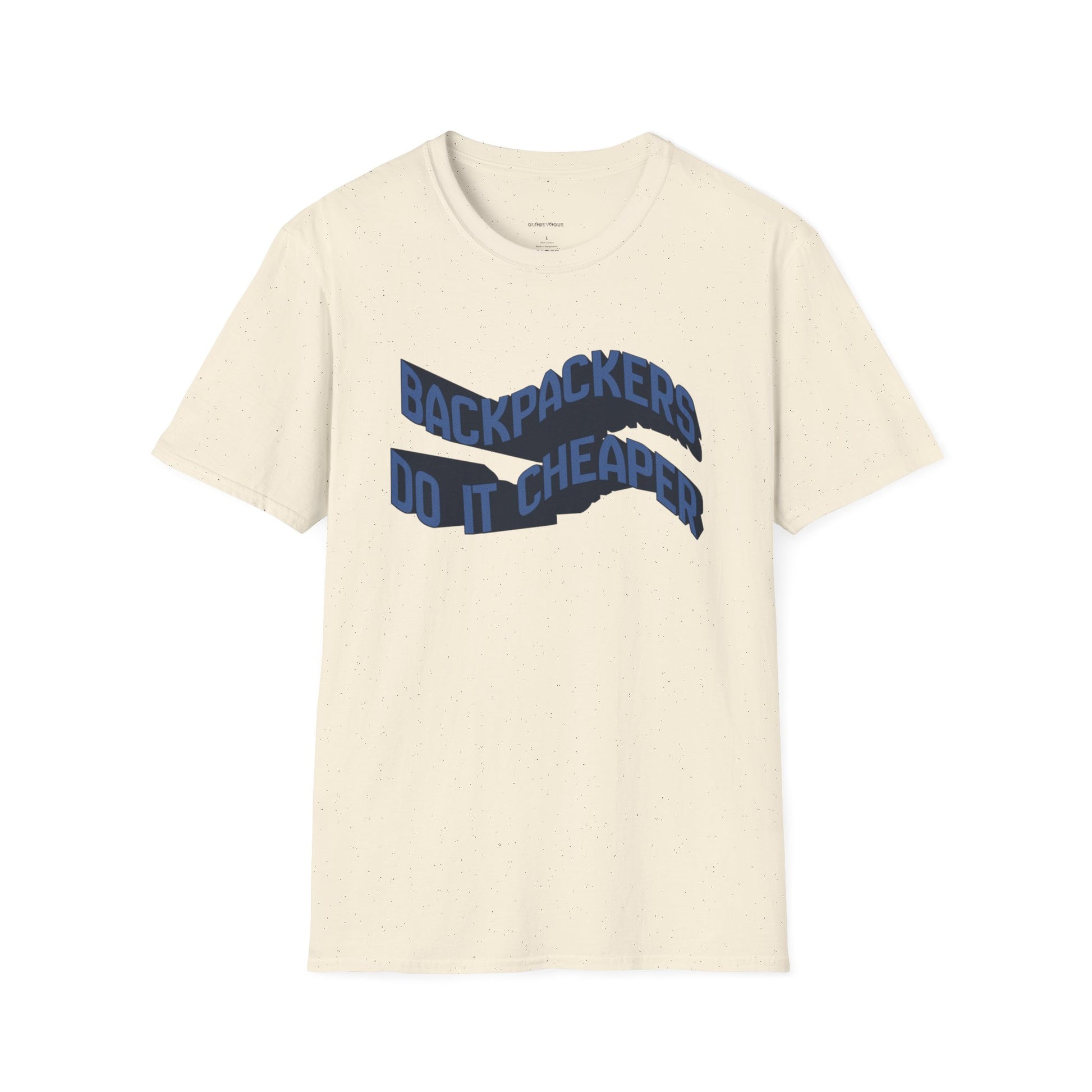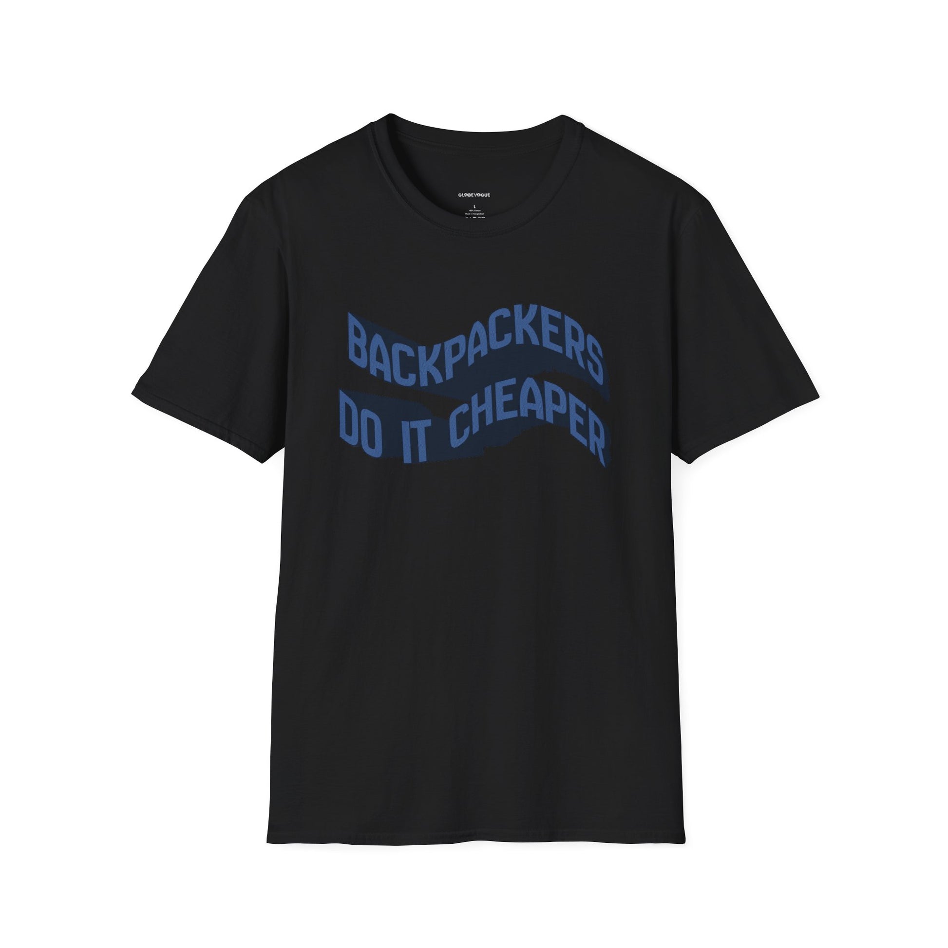 Wavy “Backpackers Do It Cheaper” Unisex Graphic T-Shirt — Adventure Travel Quote Tee.